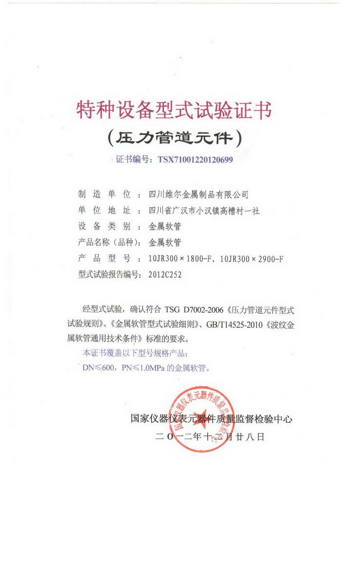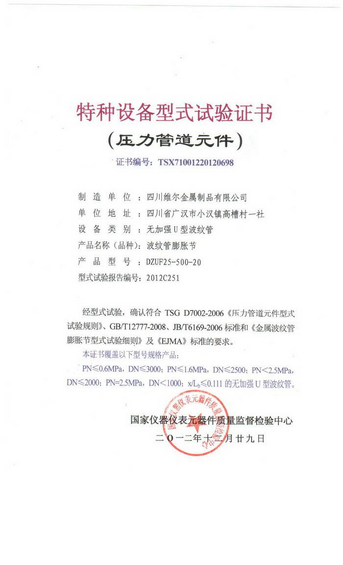 波纹膨胀节证书